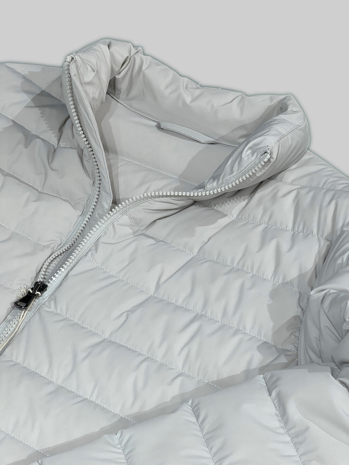 The Goose Down Bomber in Ice color combines technical sophistication with refined style. Crafted from stretch double fabric, this jacket delivers superior mobility without compromising structure. Premium goose down insulation provides exceptional warmth while maintaining a streamlined silhouette.