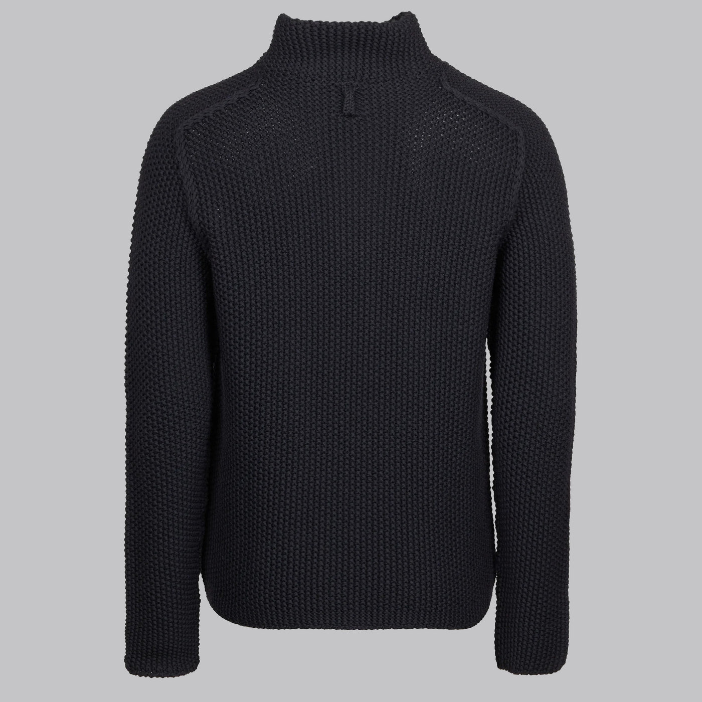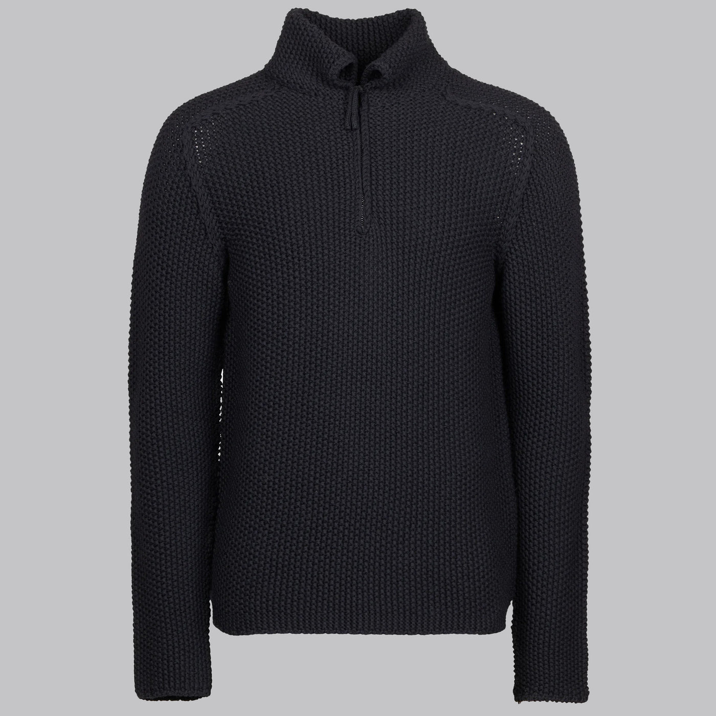 Crafted in a chunky knit with a double‑layer stand collar and half‑zip closure, this Tornado‑toned wool polo delivers understated texture and smart‑casual elegance